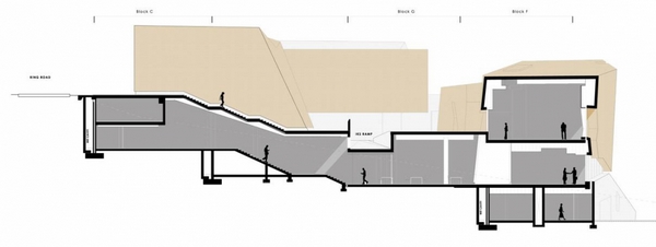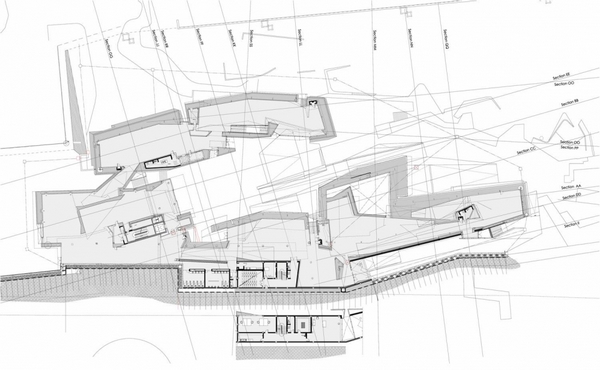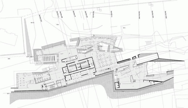 博物館的內(nèi)部空間設(shè)計(jì)具有洞穴般的品質(zhì),自然光的運(yùn)用使大型體量?jī)?nèi)更具戲劇性效果,并加強(qiáng)了建筑“露出地面”的感覺(jué)。