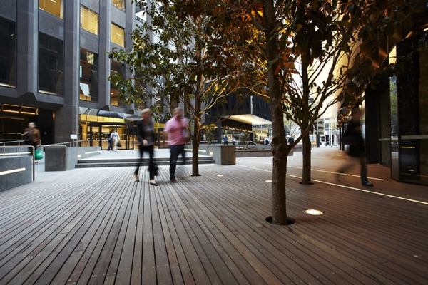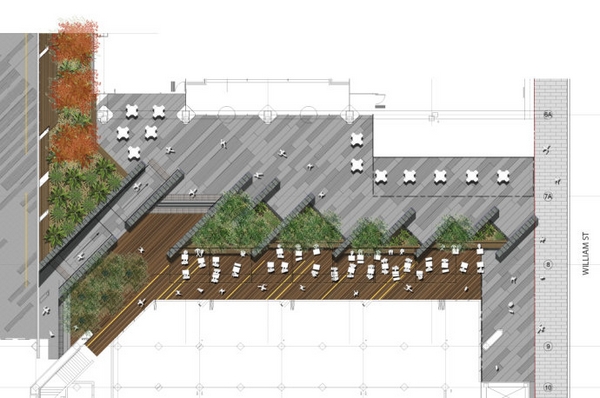 設(shè)計(jì)項(xiàng)目包括一塊以木蘭樹(shù)為兩個(gè)廣場(chǎng)中間一個(gè)主要的視覺(jué)節(jié)點(diǎn)的景觀設(shè)計(jì),木蘭樹(shù)在此還可以阻擋風(fēng)力;為零售空間提供的正式座位區(qū)和為當(dāng)?shù)鼐用癯晕顼堅(jiān)O(shè)置的非正式地區(qū)。