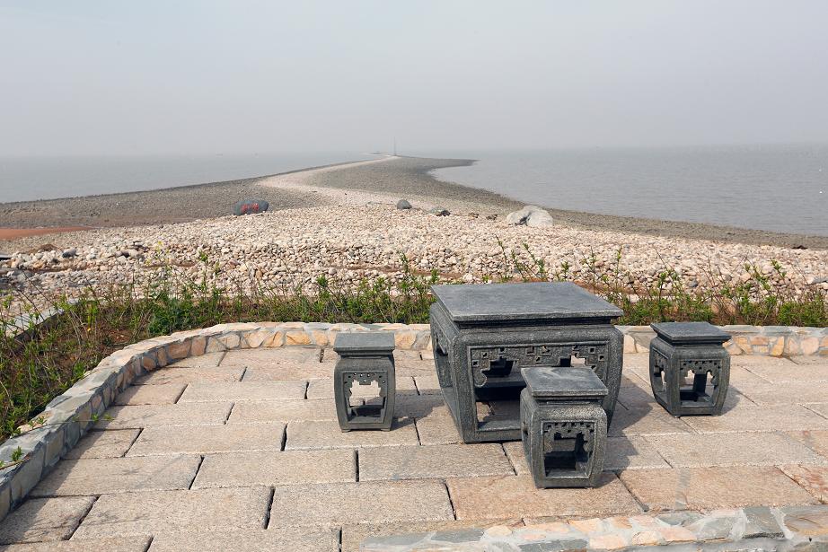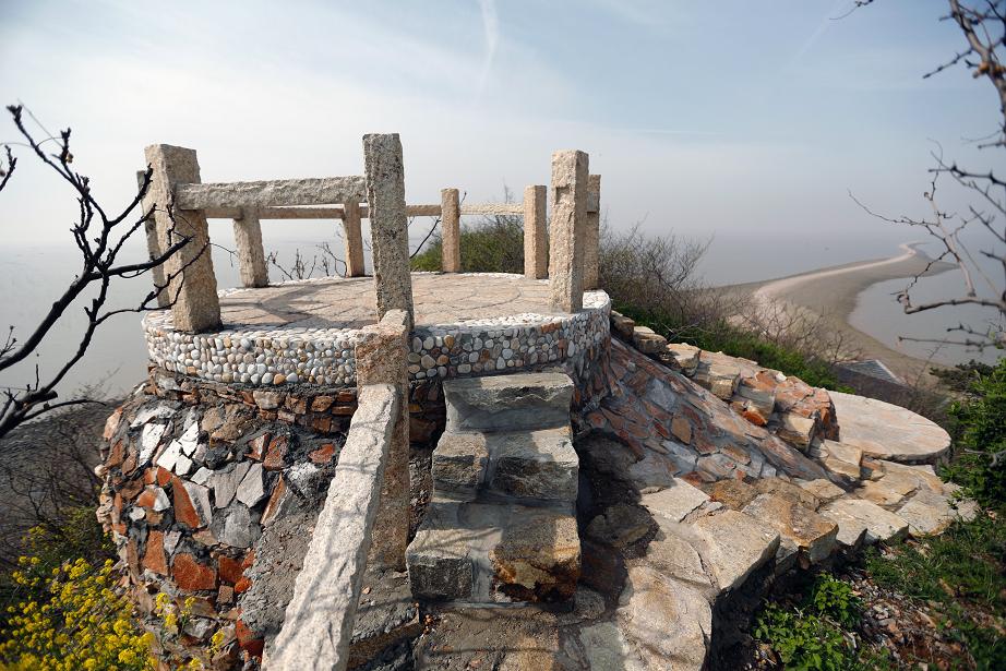 此景原為神路廣場頂部軍事眺臺(tái),設(shè)計(jì)在其頂部設(shè)置石頭欄桿,供游客登高眺望。晴朗之日可觀贛榆區(qū)新城。