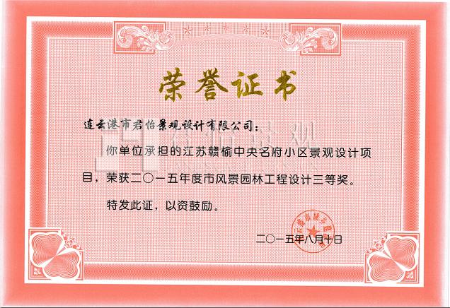 2015年獲獎(jiǎng)證書